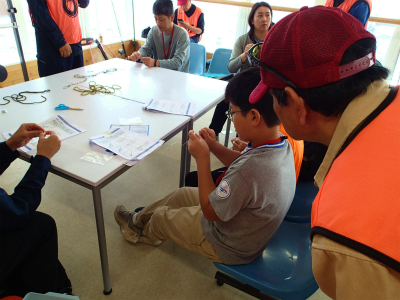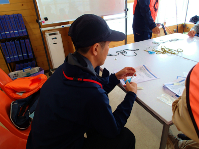 休憩を挟み、糸の結び方(ナイロンラインを使って実技指導)