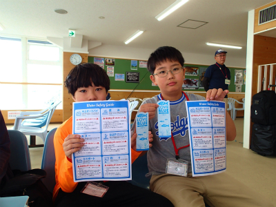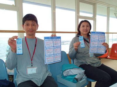 水辺の環境保全活動LOVE BLUE についての案内も配布。