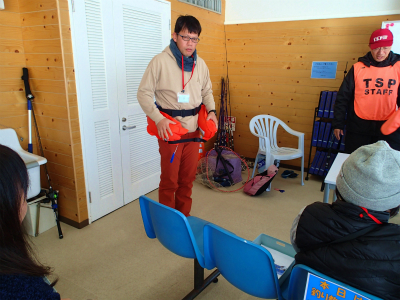 大切さを知って頂くためにライフジャケット着用体験をして頂きました。