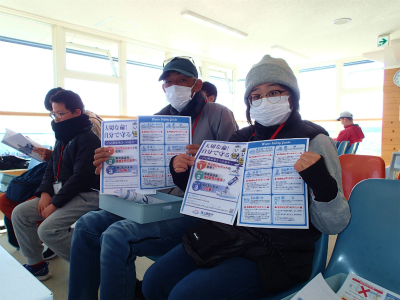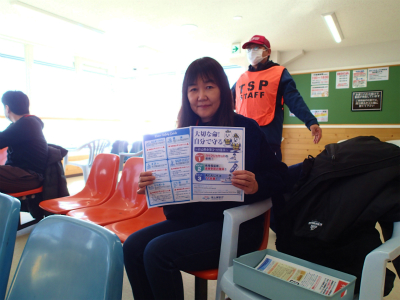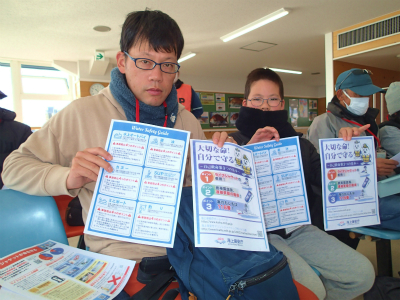 海上保安庁発行のウォーターセーフティガイド、自己救命策3つの基本!を配布。